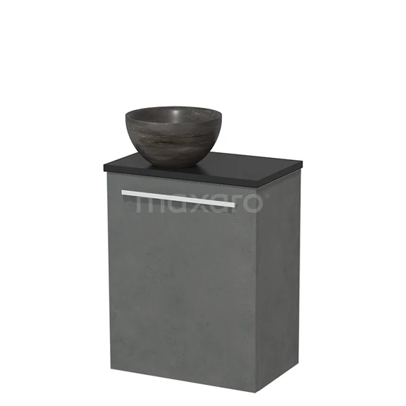 WC-Möbel mit Aufsatzwaschbecken | 41 cm Dunkelgrauer Beton Glatte Front Blaustein Naturstein Aufsatzwaschbecken Matt Schwarz Platte