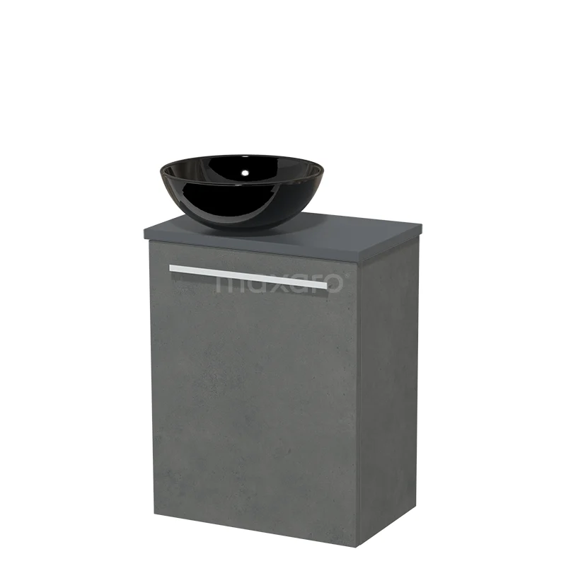 WC-Möbel mit Aufsatzwaschbecken | 41 cm Dunkelgrauer Beton Glatte Front Hochglanz Schwarz Aufsatzwaschbecken aus Keramik Dunkelgraue Platte