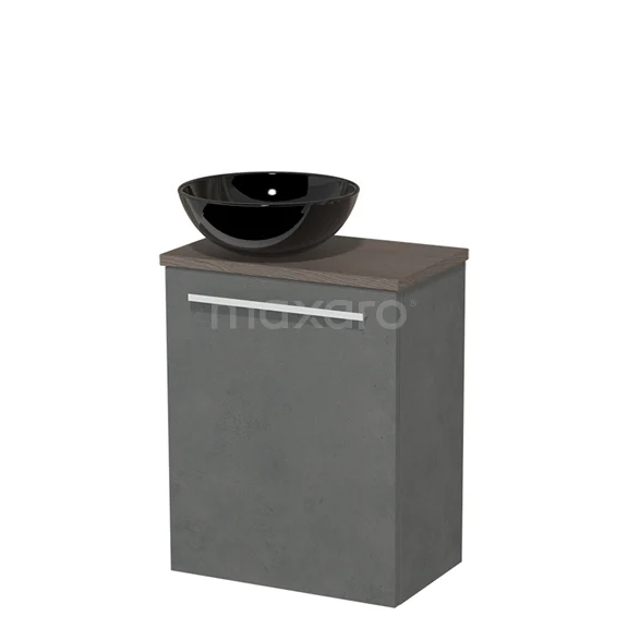 WC-Möbel mit Aufsatzwaschbecken | 41 cm Dunkelgrauer Beton Glatte Front Hochglanz Schwarz Keramik-Aufsatzwaschbecken Dunkelbraune Eiche Platte
