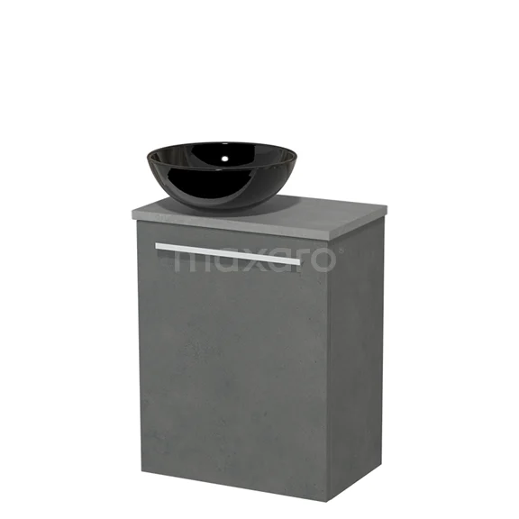 WC-Möbel mit Aufsatzwaschbecken | 41 cm Dunkelgrauer Beton Glatte Front Hochglanz Schwarz Keramik-Aufsatzwaschbecken Hellgrauer Beton Platte