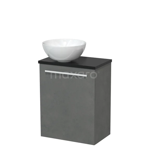 WC-Möbel mit Aufsatzwaschbecken | 41 cm Dunkelgrauer Beton Glatte Front Hochglanz Weiß Aufsatzwaschbecken aus Keramik Matt Schwarz Platte