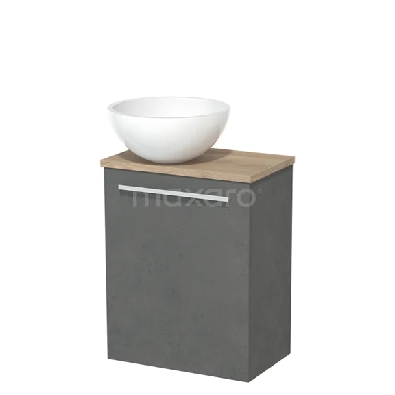 WC-Möbel mit Aufsatzwaschbecken | 41 cm Dunkelgrauer Beton Glatte Front Hochglanz Weiß Mineralguss Aufsatzwaschbecken Hellbraune Eiche Platte