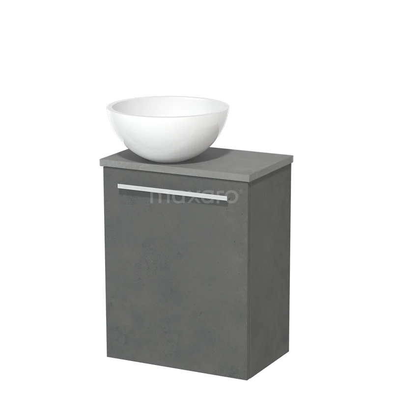 WC-Möbel mit Aufsatzwaschbecken | 41 cm Dunkelgrauer Beton Glatte Front Hochglanz Weiß Mineralguss Aufsatzwaschbecken Hellgrauer Beton Platte