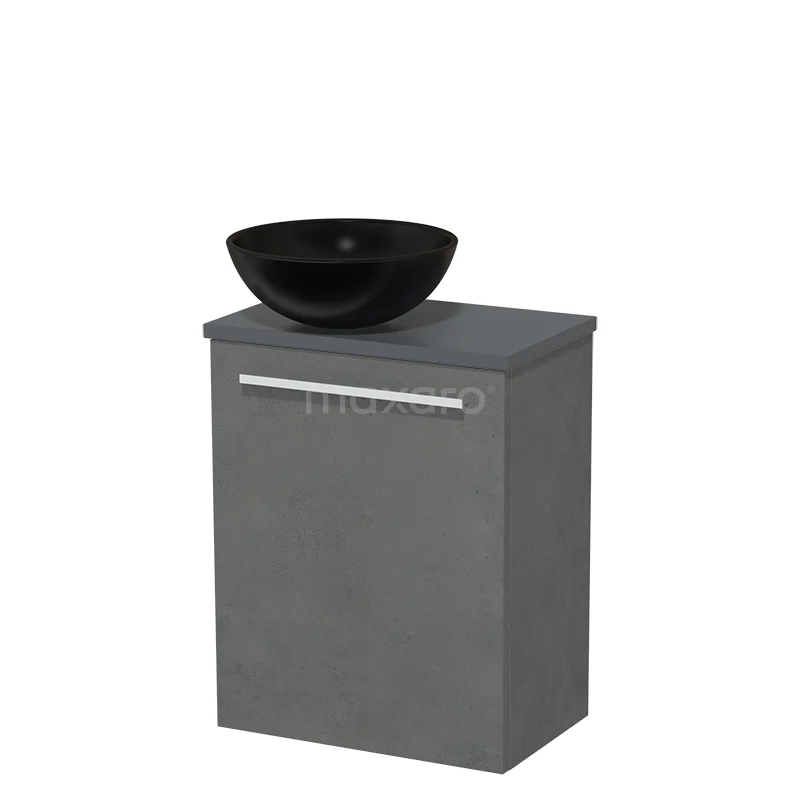 WC-Möbel mit Aufsatzwaschbecken | 41 cm Dunkelgrauer Beton Glatte Front Matt Schwarz Keramik-Aufsatzwaschbecken Dunkelgraue Platte
