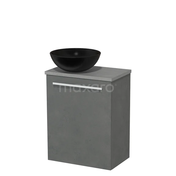 WC-Möbel mit Aufsatzwaschbecken | 41 cm Dunkelgrauer Beton Glatte Front Matt Schwarz Keramik-Aufsatzwaschbecken Hellgrauer Beton Platte