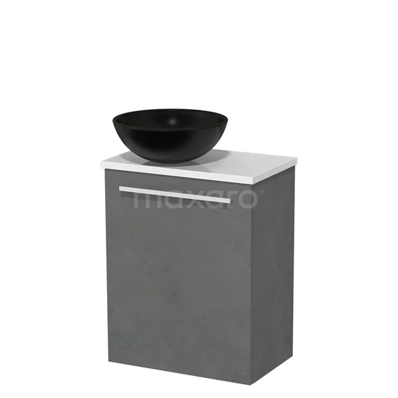 WC-Möbel mit Aufsatzwaschbecken | 41 cm Dunkelgrauer Beton Glatte Front Matt Schwarz Keramik-Aufsatzwaschbecken Hochglanz Weiß Platte