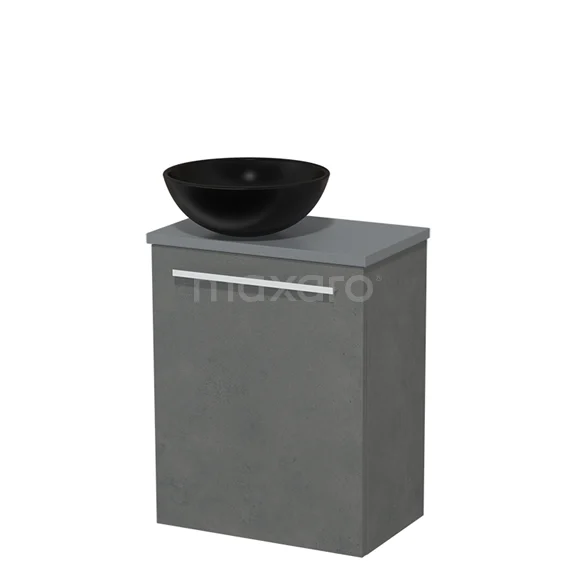 WC-Möbel mit Aufsatzwaschbecken | 41 cm Dunkelgrauer Beton Glatte Front Matt Schwarz Keramik-Aufsatzwaschbecken Mittelgraue Platte