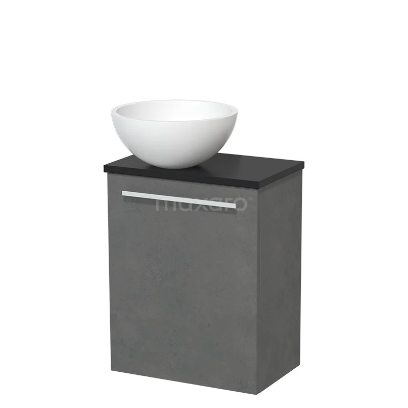 WC-Möbel mit Aufsatzwaschbecken | 41 cm Dunkelgrauer Beton Glatte Front Matt Weiß Aufsatzwaschbecken Matt Schwarz Platte