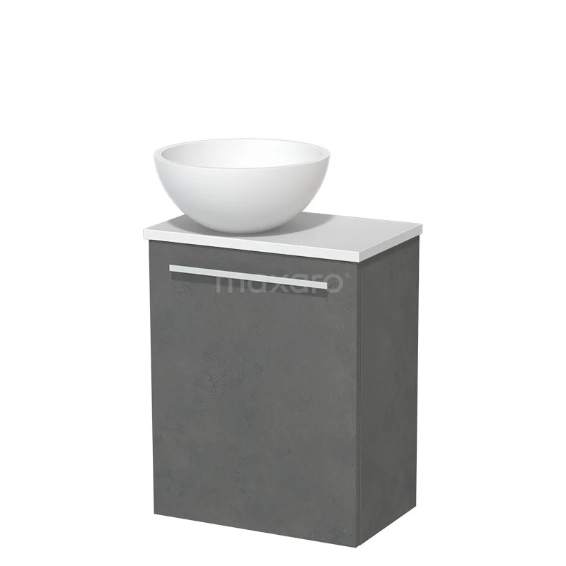 WC-Möbel mit Aufsatzwaschbecken | 41 cm Dunkelgrauer Beton Glatte Front Matt Weiß Aufsatzwaschbecken Matt Weiße Platte