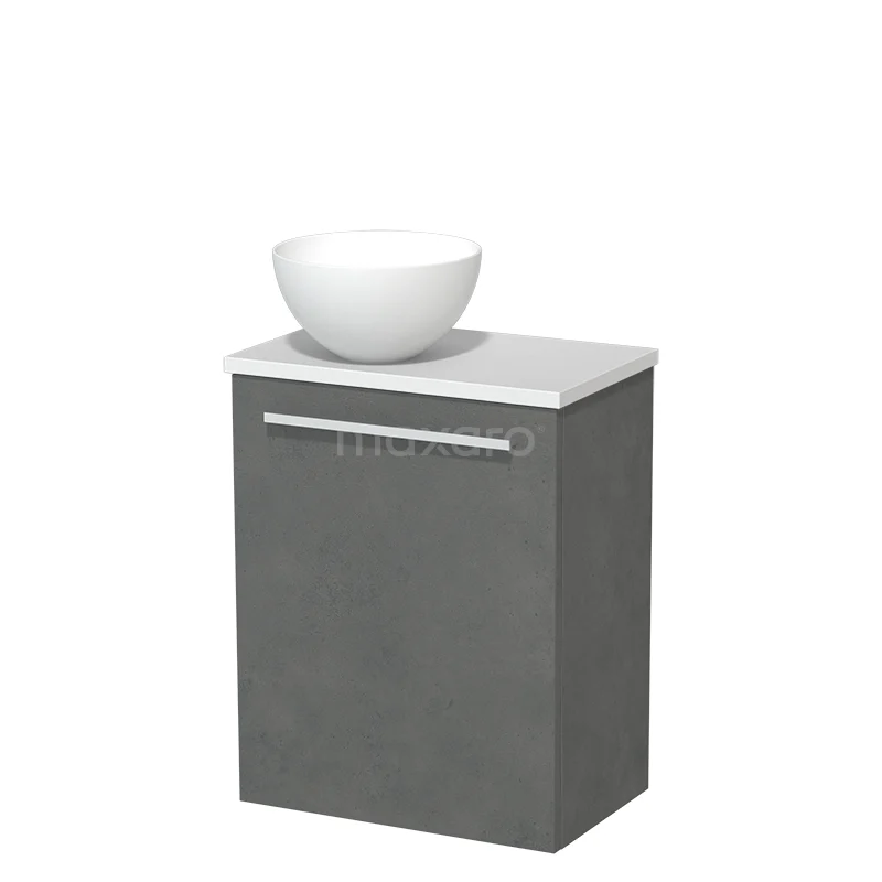 WC-Möbel mit Aufsatzwaschbecken | 41 cm Dunkelgrauer Beton Glatte Front Matt Weiß Aufsatzwaschbecken Matt Weiße Platte