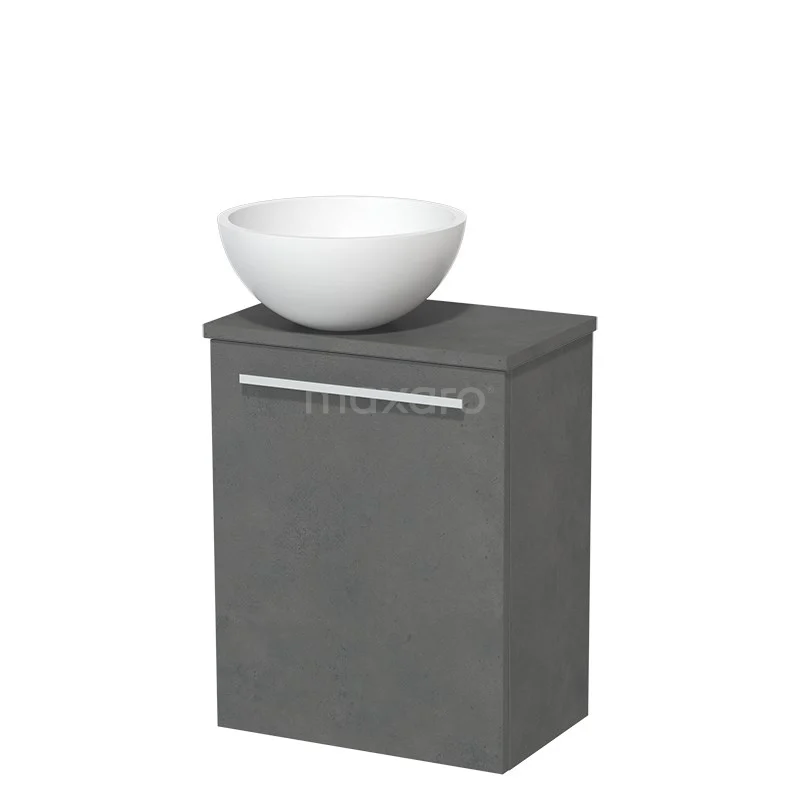 WC-Möbel mit Aufsatzwaschbecken | 41 cm Dunkelgrauer Beton Glatte Front Matt Weiß Solid Surface Aufsatzwaschbecken Dunkelgrauer Beton Platte
