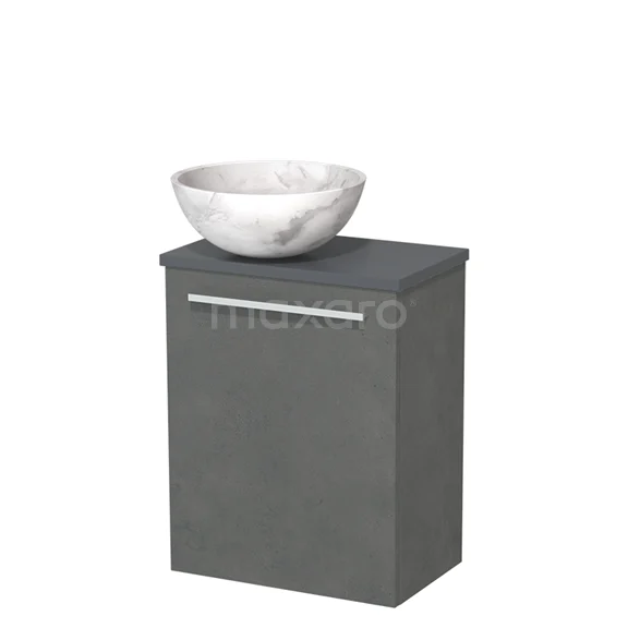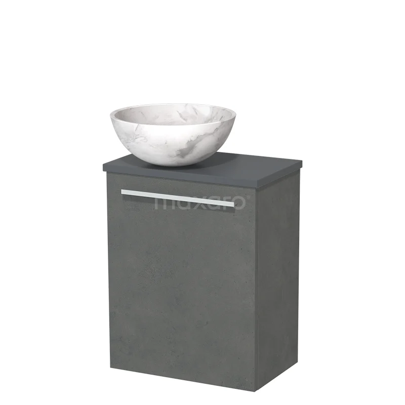 WC-Möbel mit Aufsatzwaschbecken | 41 cm Dunkelgrauer Beton Glatte Front Weißer Marmor Naturstein Aufsatzwaschbecken Dunkelgraue Platte