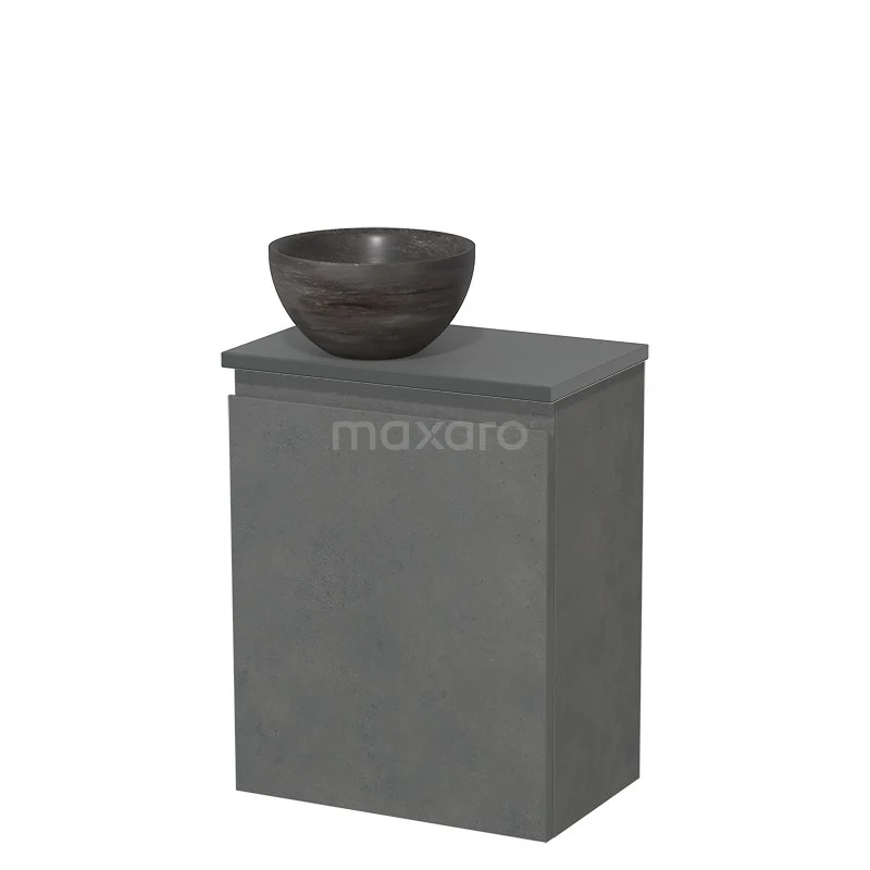 WC-Möbel mit Aufsatzwaschbecken | 41 cm Dunkelgrauer Beton Grifflose Front Blaustein Naturstein-Aufsatzwaschbecken Dunkelgraue Platte