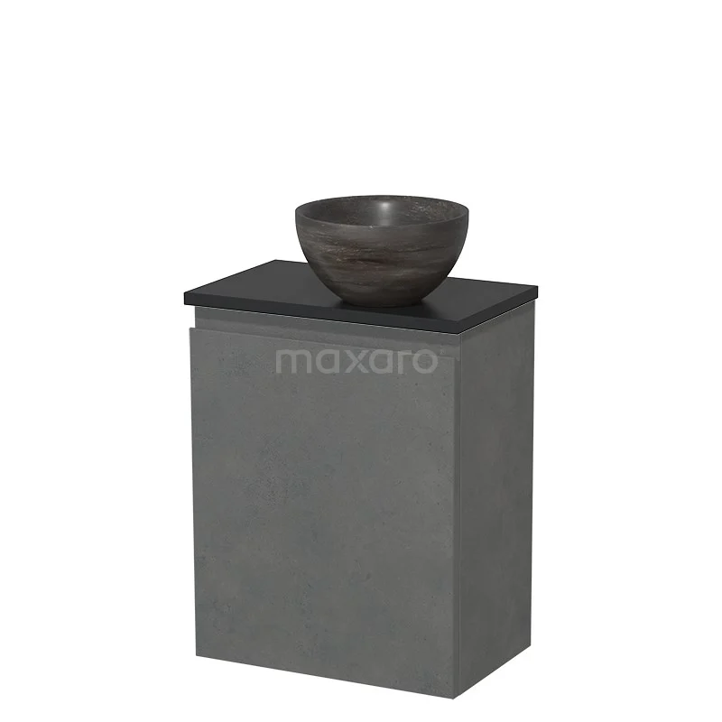 WC-Möbel mit Aufsatzwaschbecken | 41 cm Dunkelgrauer Beton Grifflose Front Blaustein Naturstein Aufsatzwaschbecken Matt Schwarz oben