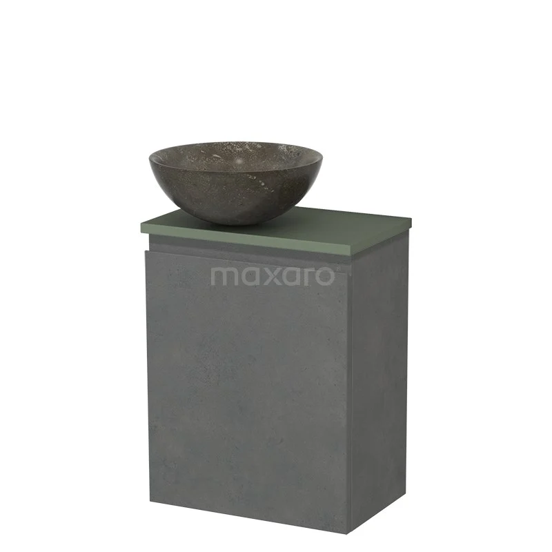 WC-Möbel mit Aufsatzwaschbecken | 41 cm Dunkelgrauer Beton Grifflose Front Blaustein Naturstein Aufsatzwaschbecken Salbeigrüne Platte