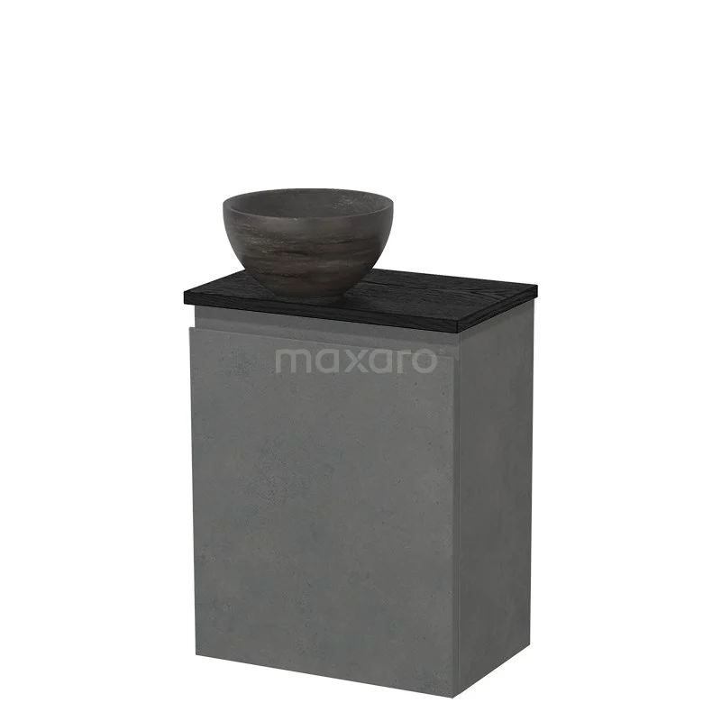 WC-Möbel mit Aufsatzwaschbecken | 41 cm Dunkelgrauer Beton Grifflose Front Blaustein Naturstein Aufsatzwaschbecken Schwarze Eiche