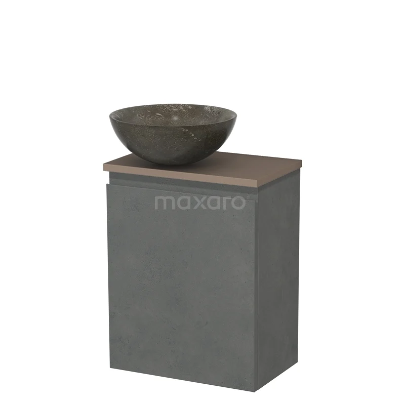 WC-Möbel mit Aufsatzwaschbecken | 41 cm Dunkelgrauer Beton Grifflose Front Blaustein Naturstein Aufsatzwaschbecken Taupe Platte