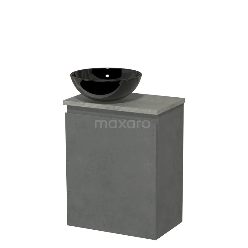 WC-Möbel mit Aufsatzwaschbecken | 41 cm Dunkelgrauer Beton Grifflose Front Hochglanz Schwarz Keramik-Aufsatzwaschbecken Graue Eiche