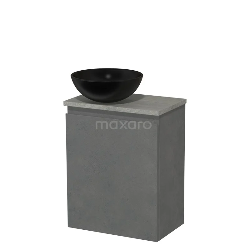WC-Möbel mit Aufsatzwaschbecken | 41 cm Dunkelgrauer Beton Grifflose Front Matt Schwarz Aufsatzwaschbecken aus Keramik Graue Eiche