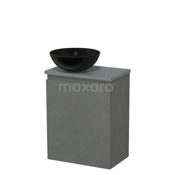 WC-Möbel mit Aufsatzwaschbecken | 41 cm Dunkelgrauer Beton Grifflose Front Matt Schwarz Keramik-Aufsatzwaschbecken Mittelgraue Platte