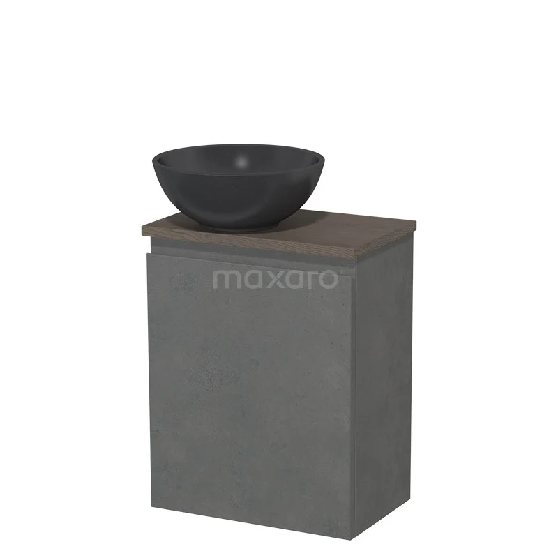 WC-Möbel mit Aufsatzwaschbecken | 41 cm Dunkelgrauer Beton Grifflose Front Matt Schwarz Quarz Aufsatzwaschbecken Dunkelbraune Eiche Platte
