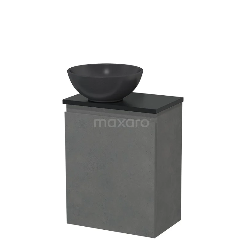 WC-Möbel mit Aufsatzwaschbecken | 41 cm Dunkelgrauer Beton Grifflose Front Matt Schwarz Quarz Aufsatzwaschbecken Matt Schwarz Platte
