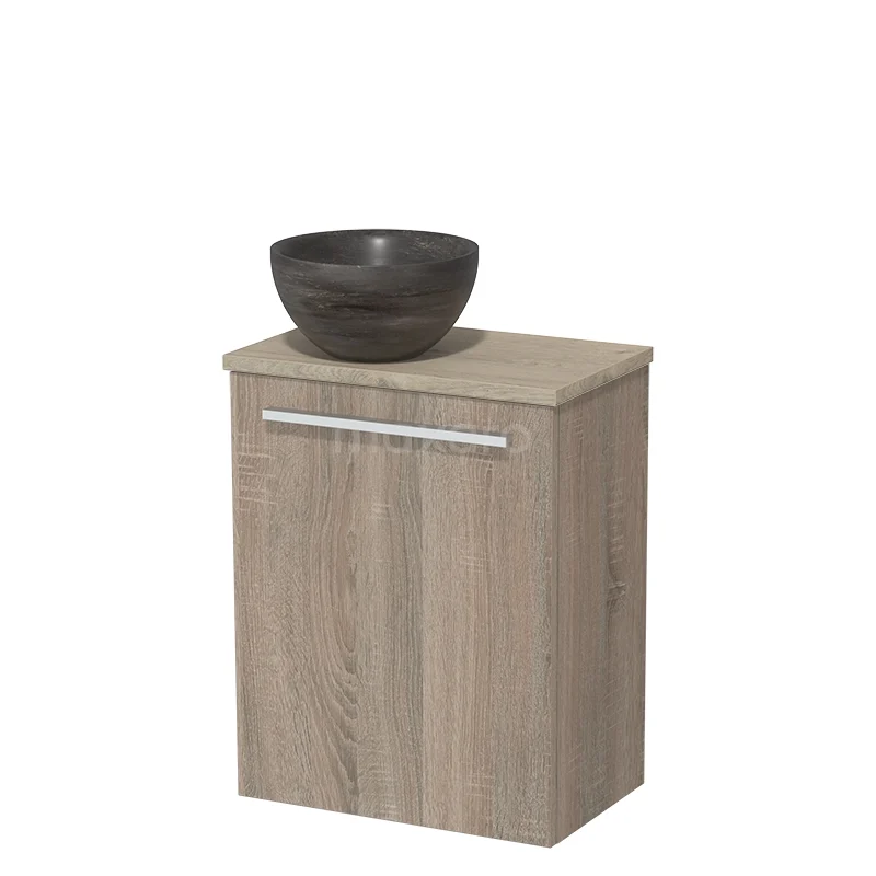 WC-Möbel mit Aufsatzwaschbecken | 41 cm Eiche glatte Front Blaustein Naturstein Aufsatzwaschbecken hellgraue Eiche Platte