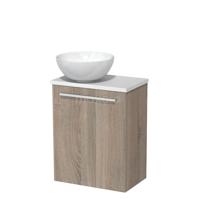 WC-Möbel mit Aufsatzwaschbecken | 41 cm Eiche glatte Front Hochglanz Weiß Keramik-Aufsatzwaschbecken Hochglanz Weiß Platte