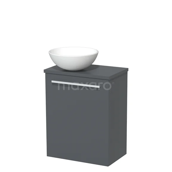 WC-Möbel mit Aufsatzwaschbecken | 41 cm Eiche glatte Front Matt Weiß Keramik-Aufsatzwaschbecken Dunkelgrau Platte