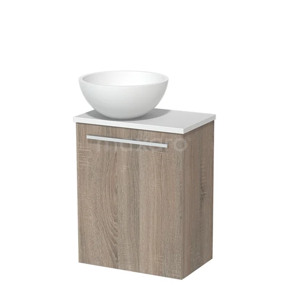 WC-Möbel mit Aufsatzwaschbecken | 41 cm Eiche Glatte Front Matt Weiß Solid Surface Aufsatzwaschbecken Matt Weiße Platte