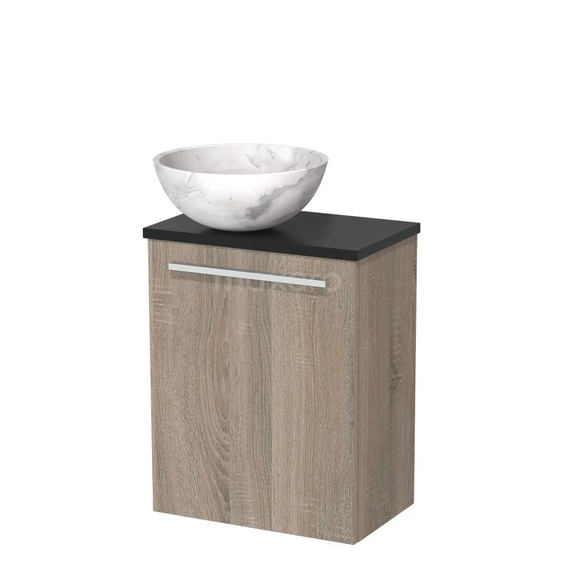WC-Möbel mit Aufsatzwaschbecken | 41 cm Eiche glatte Front Weißer Marmor Naturstein Aufsatzwaschbecken Matt Schwarz Platte