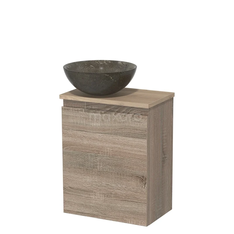 WC-Möbel mit Aufsatzwaschbecken | 41 cm Eiche grifflose Front Blaustein Naturstein Aufsatzwaschbecken Hellbraune Eiche Platte
