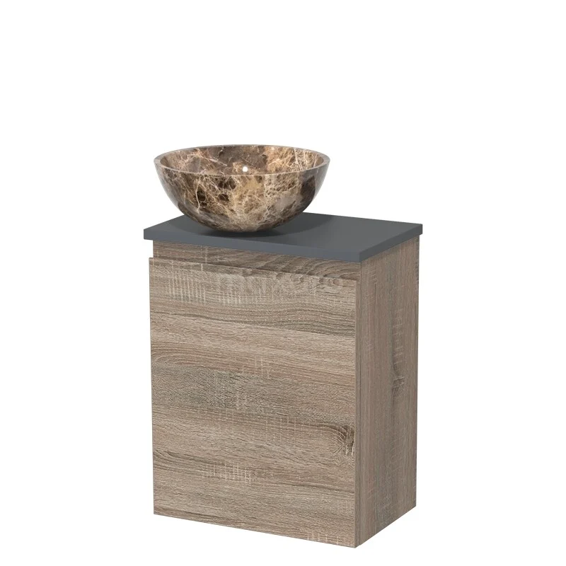 WC-Möbel mit Aufsatzwaschbecken | 41 cm Eiche grifflose Front Dunkelgrau Aufsatzwaschbecken aus Naturstein Dunkelgrau Platte