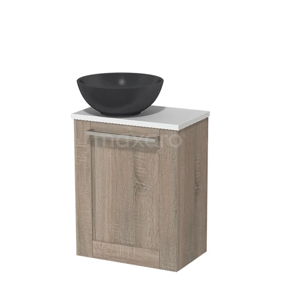 WC-Möbel mit Aufsatzwaschbecken | 41 cm Eiche Rahmen Front Matt Schwarz Quarz Aufsatzwaschbecken Matt Weiß Platte