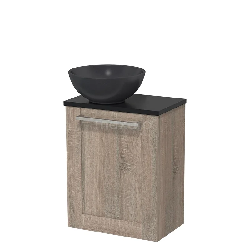 WC-Möbel mit Aufsatzwaschbecken | 41 cm Eiche Rahmen Front Matt Schwarz Quarz Becken Matt Schwarz Platte