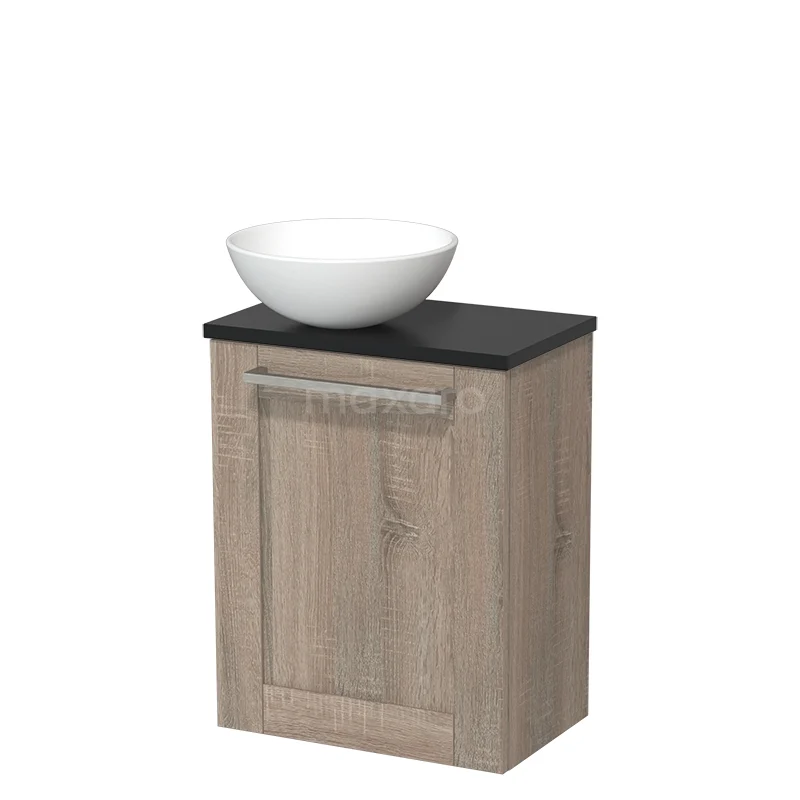 WC-Möbel mit Aufsatzwaschbecken | 41 cm Eiche Rahmen Front Matt Weiß Keramik Aufsatzwaschbecken Matt Schwarz Platte