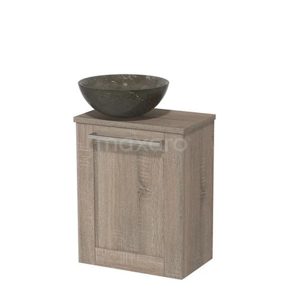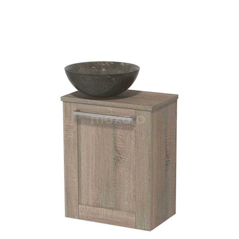WC-Möbel mit Aufsatzwaschbecken | 41 cm Eiche Rahmenfront Blaustein Naturstein Aufsatzwaschbecken Platte aus Eiche