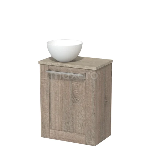 WC-Möbel mit Aufsatzwaschbecken | 41 cm Eiche Rahmenfront Matt Weiß Aufsatzwaschbecken Hellgraue Eiche Platte