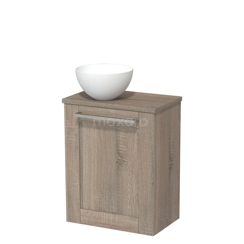 WC-Möbel mit Aufsatzwaschbecken | 41 cm Eiche Rahmenfront Matt Weiß Aufsatzwaschbecken Platte Eiche
