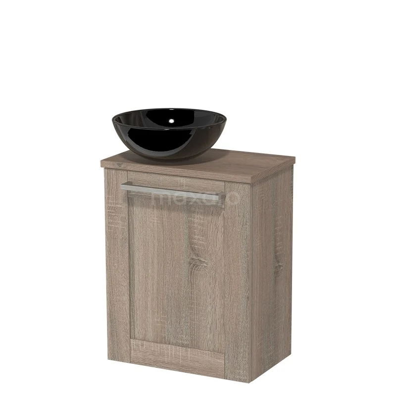 WC-Möbel mit Aufsatzwaschbecken | 41 cm Front Eiche Rahmen Hochglanz Schwarz Keramik-Aufsatzwaschbecken Mittelbraune Eiche Platte