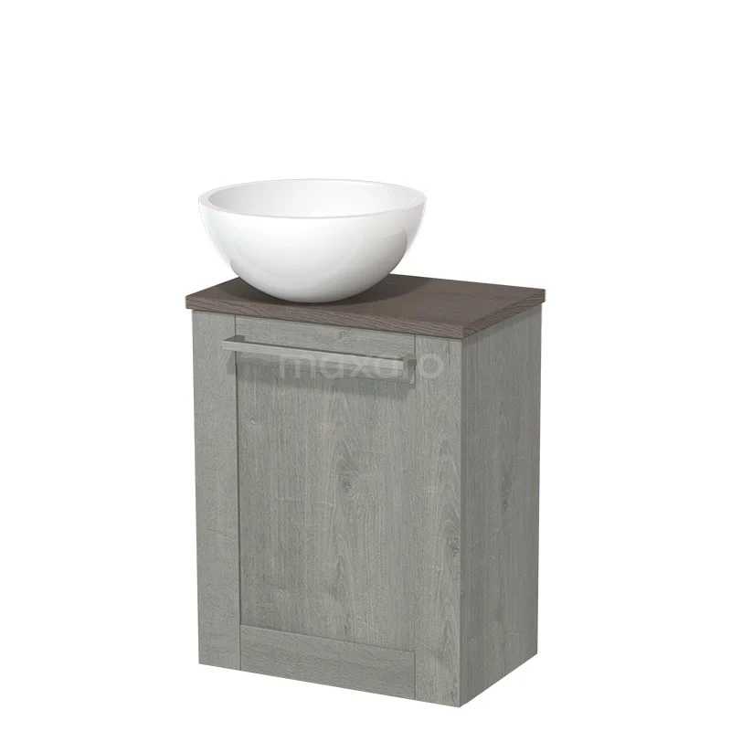 WC-Möbel mit Aufsatzwaschbecken | 41 cm Grau Eiche Rahmenfront Hochglanz Weiß Mineralguss Aufsatzwaschbecken Dunkelbraune Eiche