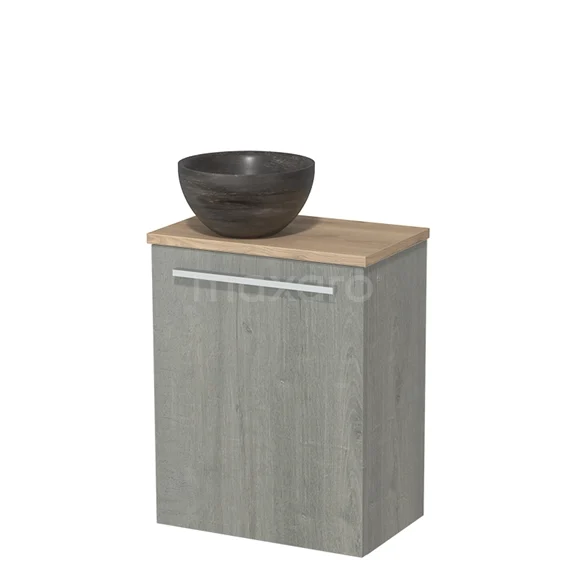 WC-Möbel mit Aufsatzwaschbecken | 41 cm Graue Eiche Glatte Front Blaustein Naturstein Aufsatzwaschbecken Hellbraune Eiche Platte