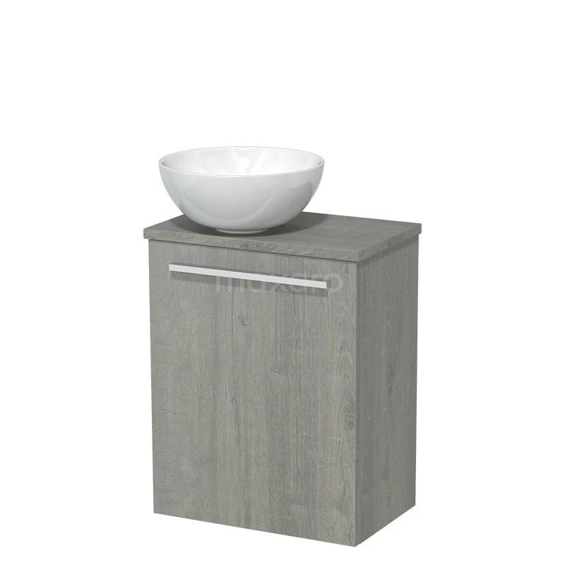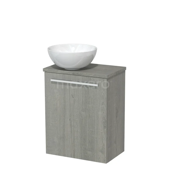 WC-Möbel mit Aufsatzwaschbecken | 41 cm Graue Eiche Glatte Front Hochglanz Weiß Keramik-Aufsatzwaschbecken Graue Eiche Platte