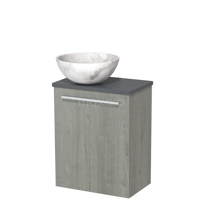 WC-Möbel mit Aufsatzwaschbecken | 41 cm Graue Eiche Glatte Front Weißer Marmor Aufsatzwaschbecken aus Naturstein Dunkelgrau