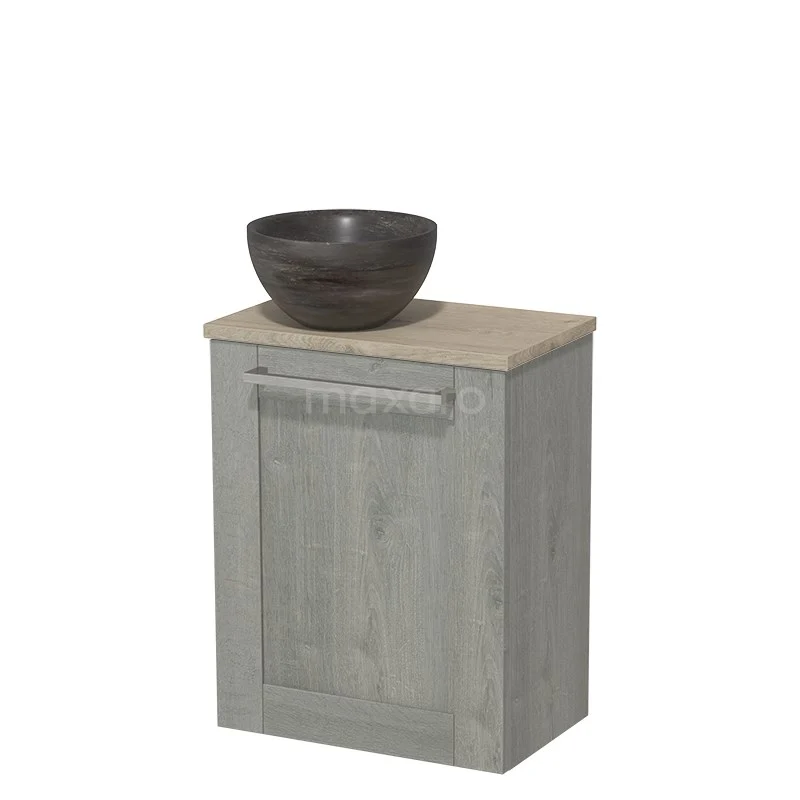 WC-Möbel mit Aufsatzwaschbecken | 41 cm Graue Eiche Rahmenfront Blaustein Naturstein Aufsatzwaschbecken Hellgraue Eiche Platte