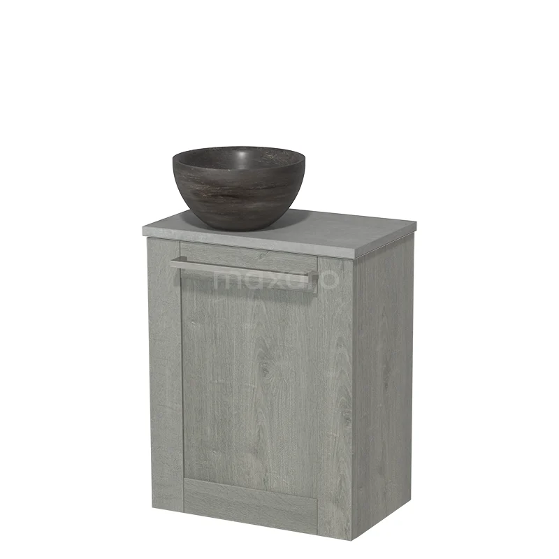 WC-Möbel mit Aufsatzwaschbecken | 41 cm Graue Eiche Rahmenfront Blaustein Naturstein Aufsatzwaschbecken Hellgrauer Beton Platte
