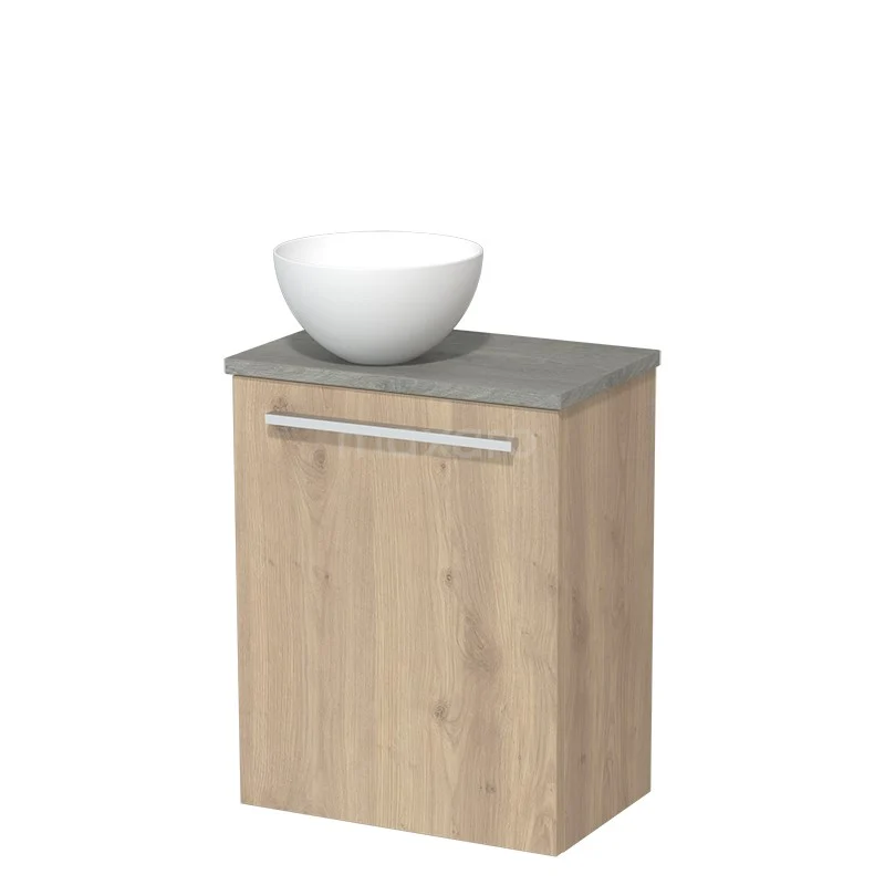 WC-Möbel mit Aufsatzwaschbecken | 41 cm Hellbraune Eiche Glatte Front Matt Weiß Aufsatzwaschbecken Graue Eiche Platte