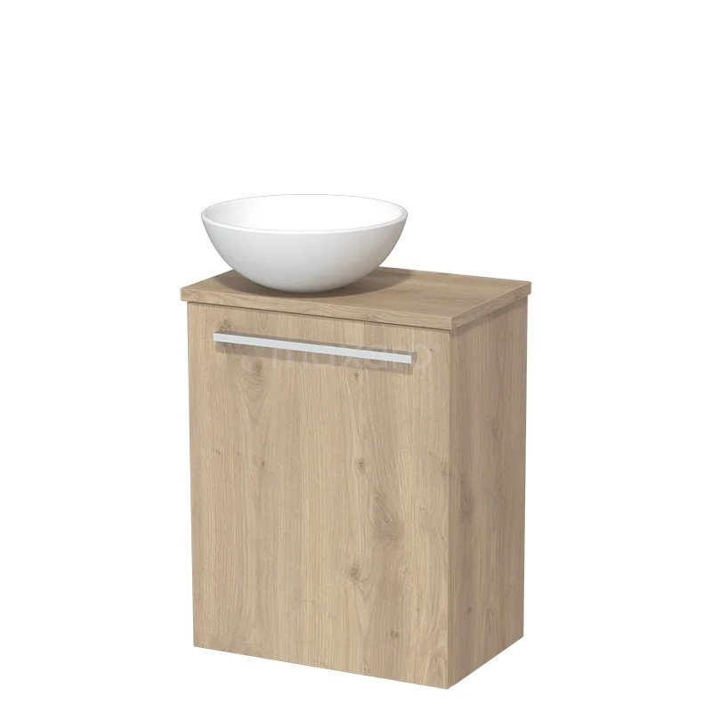 WC-Möbel mit Aufsatzwaschbecken | 41 cm Hellbraune Eiche Glatte Front Matt Weiß Keramik Aufsatzwaschbecken Hellbraune Eiche Platte