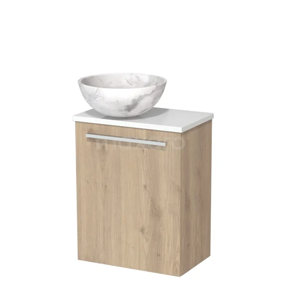 WC-Möbel mit Aufsatzwaschbecken | 41 cm Hellbraune Eiche Glatte Front Weißer Marmor Naturstein Aufsatzwaschbecken Hochglanz Weiß