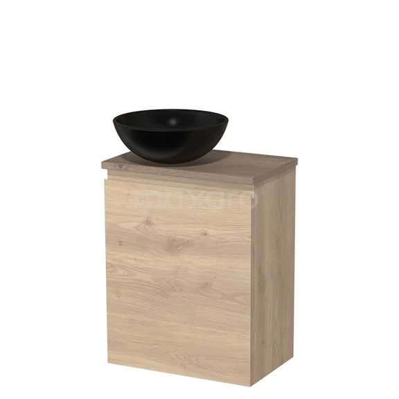 WC-Möbel mit Aufsatzwaschbecken | 41 cm hellbraune Eiche grifflose Front Matt Schwarz Keramik-Aufsatzwaschbecken mittelbraune Eiche
